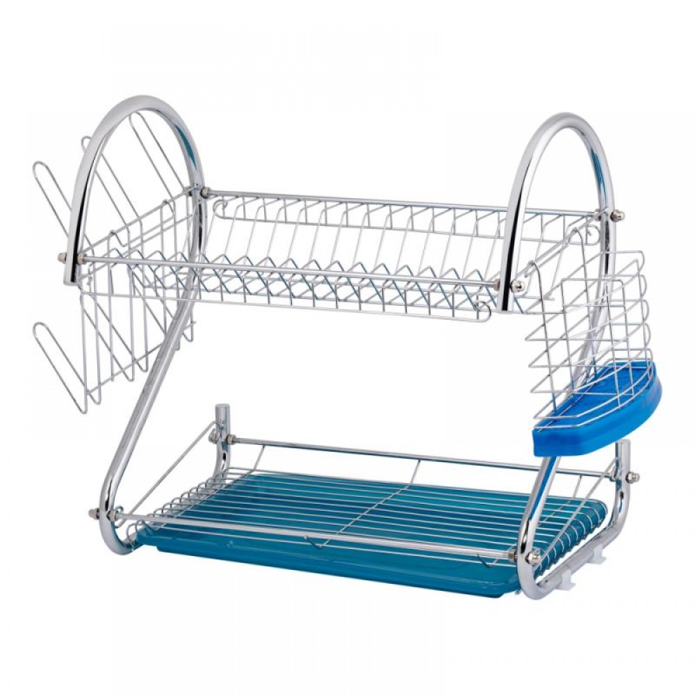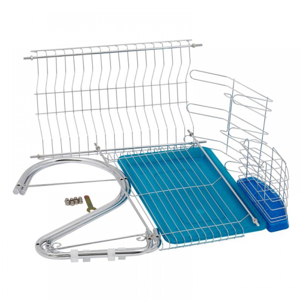 Сушилка для посуды настольная Lidz (CRM)-121.06.09 устанавливается возле мойки. Она позволяет хранить посуду сухой и всегда под рукой. Изделие имеет подставку для ложек и вилок, крючки, держатель для стаканов и держатель для тарелок с синим поддоном под ними. Поддоны легко снимаются и просты в очистке.