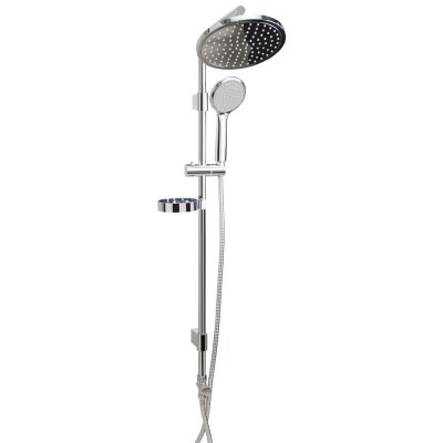 - Кронштейн для верхнего душа, лейка для верхнего душа, кронштейн для ручного душа, лейка для ручного душа, душевой шланг, душевая стойка, мыльница, крепежи.